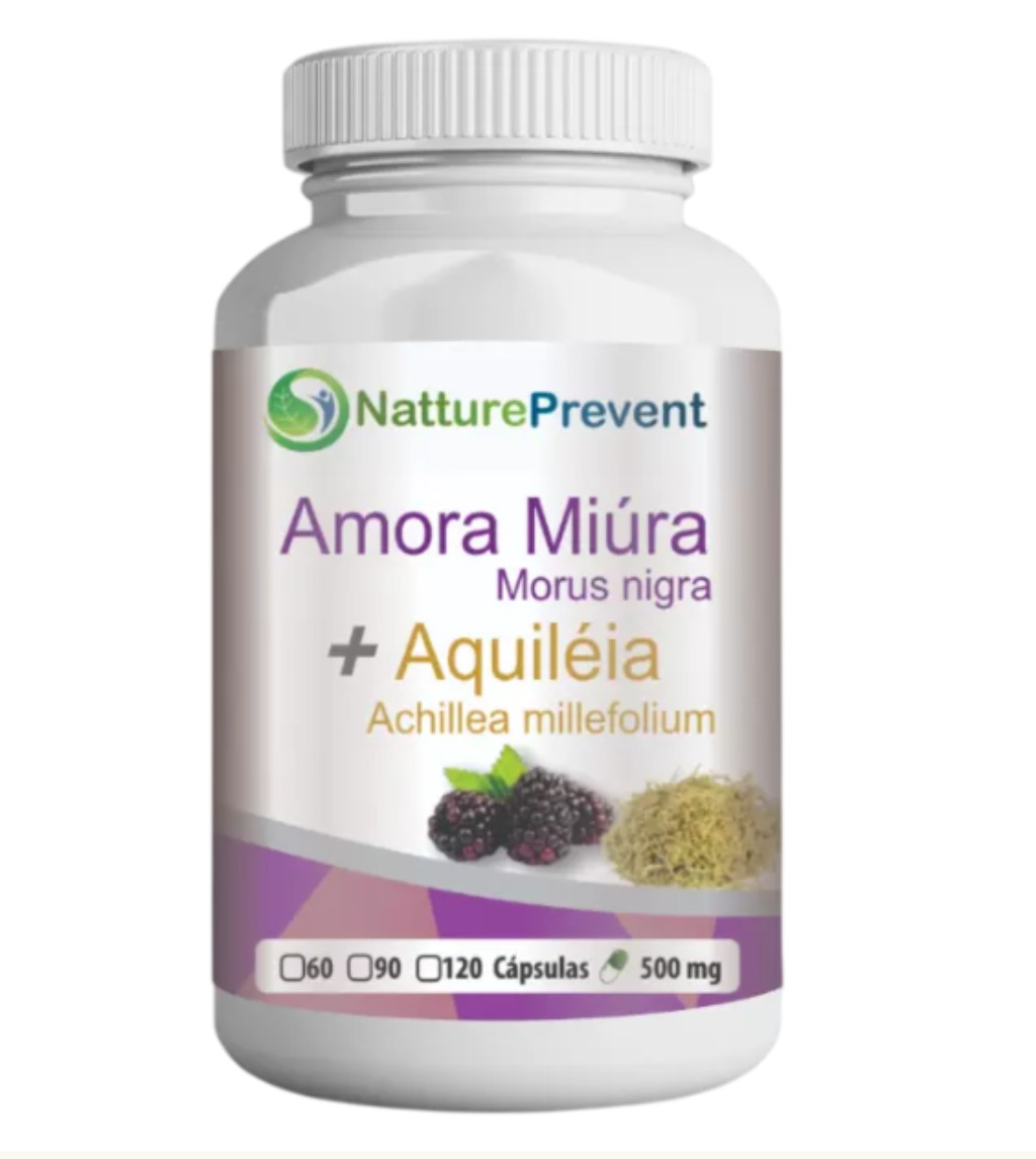 Suplemento alimentar à base de Amora Miúra (Morus nigra) e Aquiléia (Achillea millefolium). Este produto auxilia no bem-estar feminino, no conforto digestivo funcional e na ação antioxidante quando associado a hábitos de vida saudáveis.