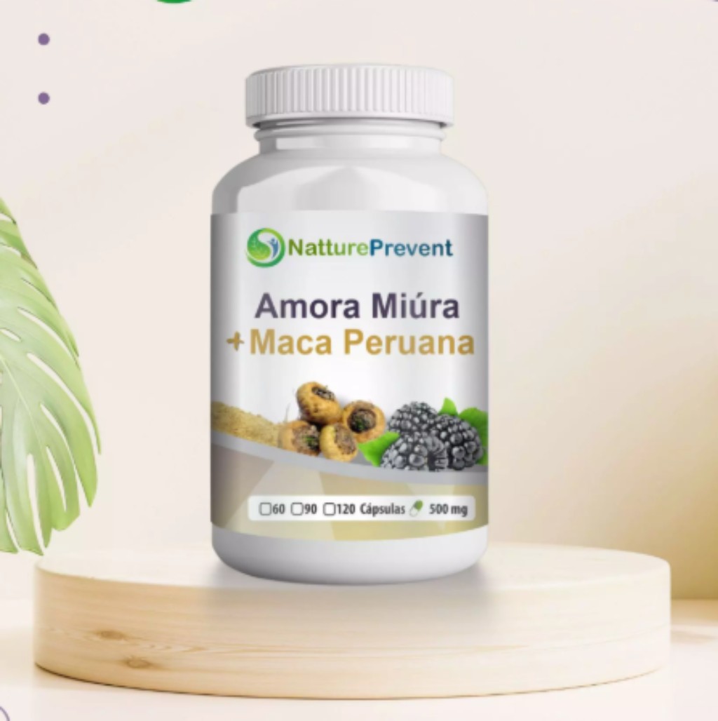 Suplemento alimentar à base de Amora Miúra e Maca Peruana (Lepidium meyenii). Este produto auxilia no suporte à vitalidade, ao equilíbrio funcional e ao bem-estar geral quando associado a hábitos de vida saudáveis.