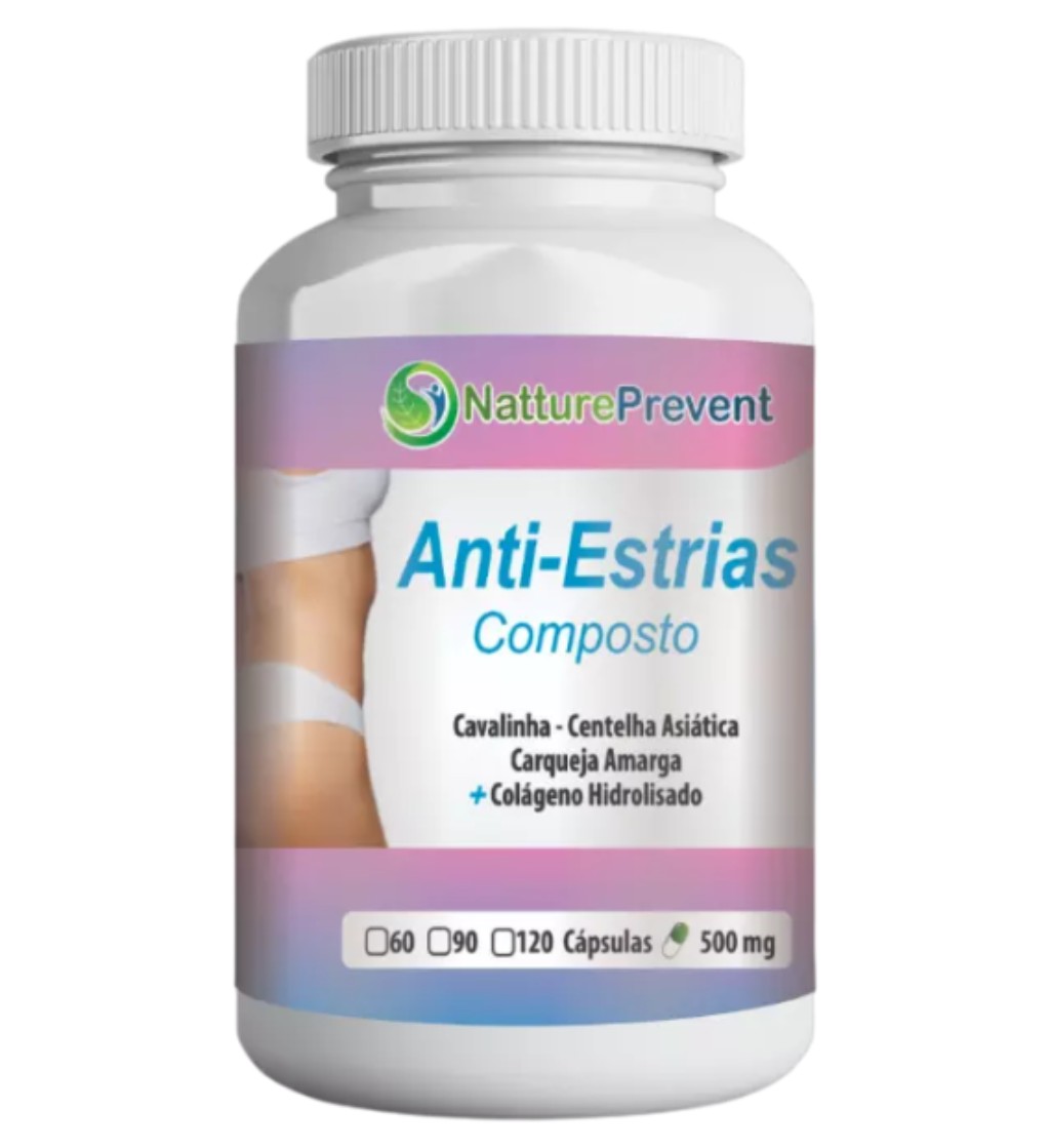 Apresentamos Anti-Estrias Composto 500mg, um suplemento alimentar que reúne Cavalinha, Centella Asiática, Carqueja Amarga e Colágeno Hidrolisado em uma fórmula prática desenvolvida para apoiar a saúde da pele, a produção de colágeno e o bem-estar circulatório.