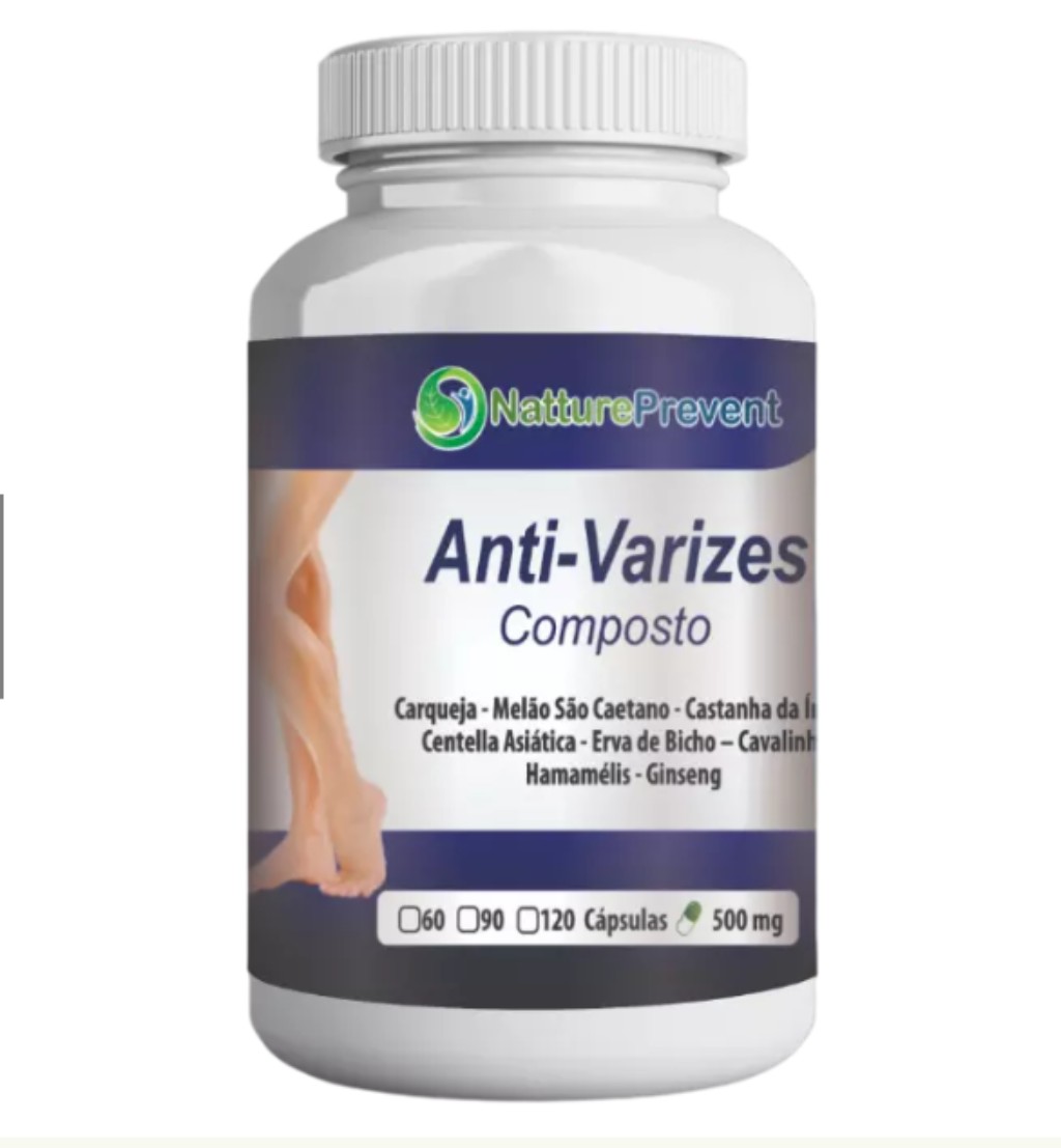 Apresentamos Anti-Varizes Composto 500mg, um suplemento alimentar que reúne Carqueja, Melão São Caetano, Castanha da Índia, Centella Asiática, Erva de Bicho, Cavalinha, Hamamélis e Ginseng em uma fórmula prática desenvolvida para apoiar o bem-estar circulatório, o conforto das pernas e o equilíbrio funcional do organismo.