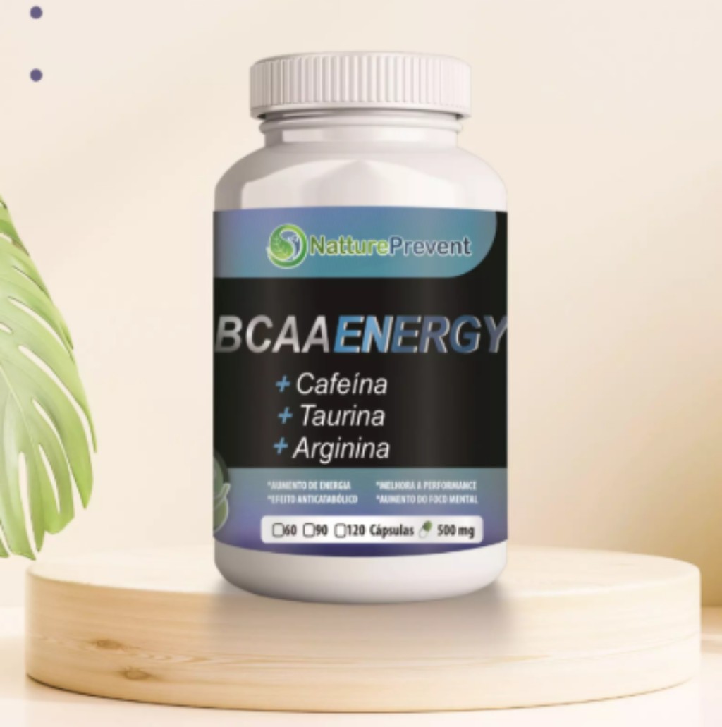 💥 BCAA Energy 500mg combina aminoácidos de cadeia ramificada (leucina, isoleucina, valina) com cafeína, taurina e arginina em cápsulas para dar gás nos treinos, auxiliar na recuperação muscular e aumentar o estado de alerta e concentração.
