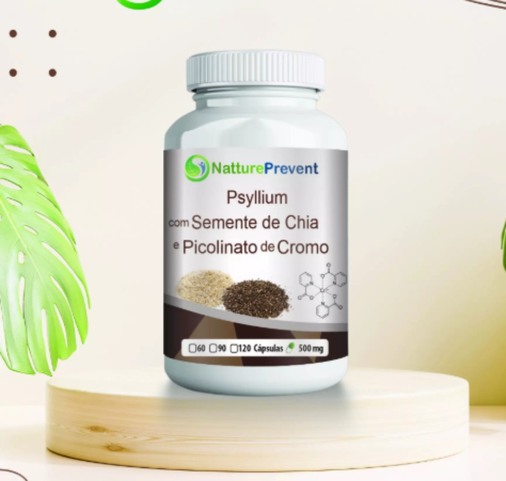 - Produto: Psyllium com Semente de Chia e Picolinato de Cromo 500mg – Suplemento Alimentar
